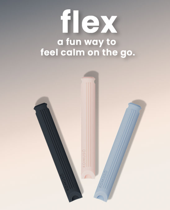 Flex is made of food-grade silicone and comes in a 3-pack so you can spread the calm. It's durable, flexible and so effective. Use it on the go; rub it, bite it, flex it, breathe through it.